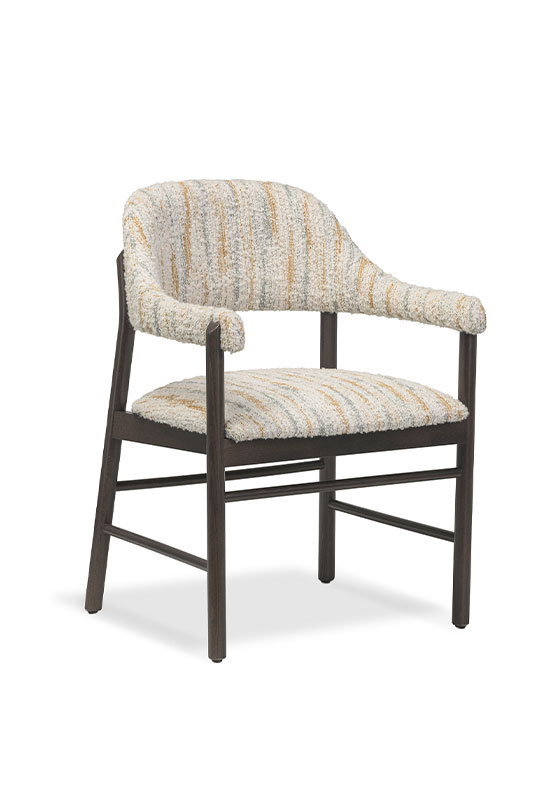 Sedia e poltroncina dal design classico e senza tempo, caratterizzate da uno schienale arrotondato e accogliente e da una solida struttura in legno, perfette per l’utilizzo nei settori hospitality e healthcare.