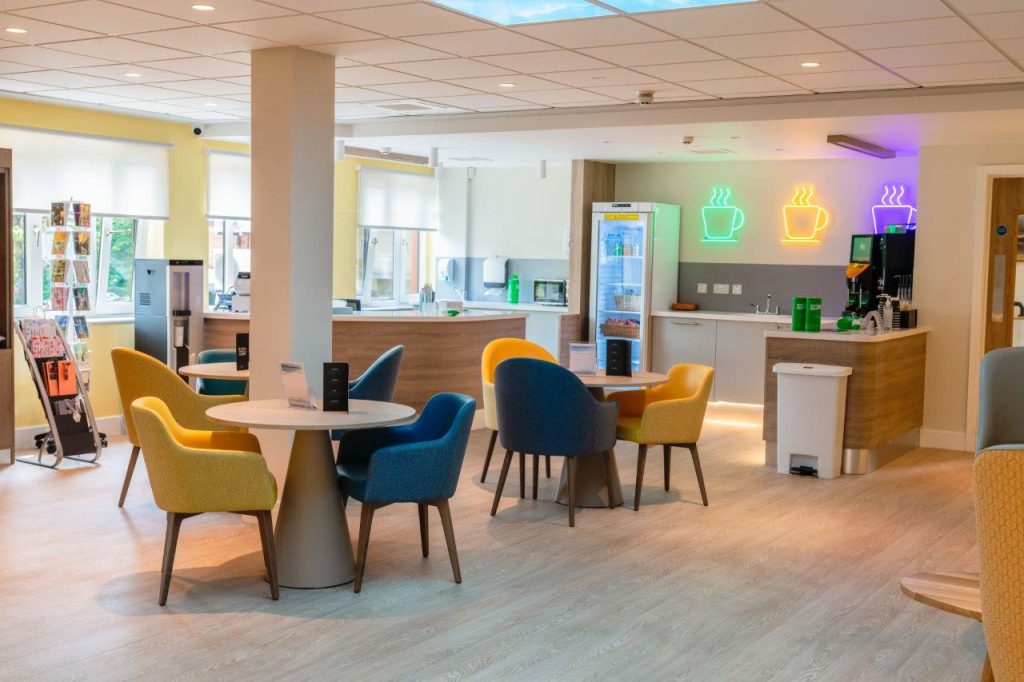 Designed especially for the contract market, Goa chair is available with wooden or metal base and it can be upholstered with fabric, faux leather or leather. The sturdy solid beech wood structure makes it very robust, and its shape offers maximum sitting comfort. The armchair can be enhanced by leather handles.