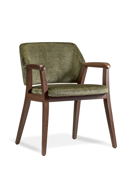 Made of beech wood, Greta is a comfortable and elegant armchair. The large upholstered back give sturdiness and create dynamism and vitality, while the shape of the seat offers maximum sitting comfort. The back and the seat can be upholstered with two different fabrics or faux leathers, making this armchairs very customizable.