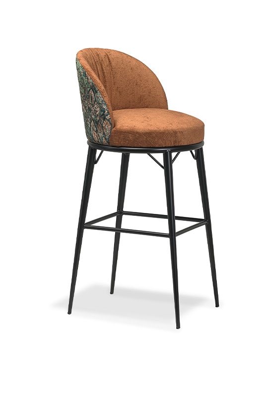 The robust, generously padded seat ensures long-lasting performance and the soft-covered backrest creates non only a pleasant aesthetic detail but adds more comfort, while the distinctive metal base provides strength, stability, and contemporary style.